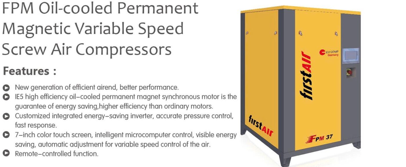 Máy Nén Khí FirstAir Biến TầnMáy Nén Khí Trục Vít FirstAir Khởi Động Biến Tần Tiết Kiệm 30% – 40% Chi Phí Điện Năng.