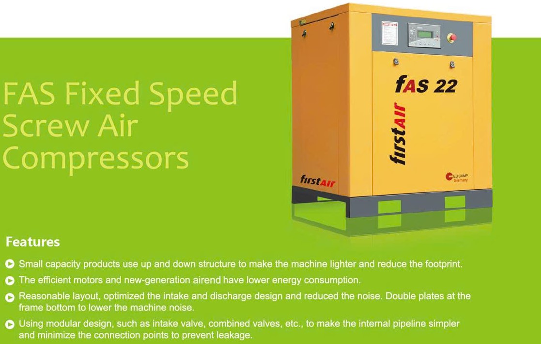 Máy nén khí FirstAir – Thuộc tập đoàn Fusheng Đài LoanThượng Hải – Trung Quốc– Sử dụng đầu nén trục vít Eucom thương hiệu số 1 tại Đức,